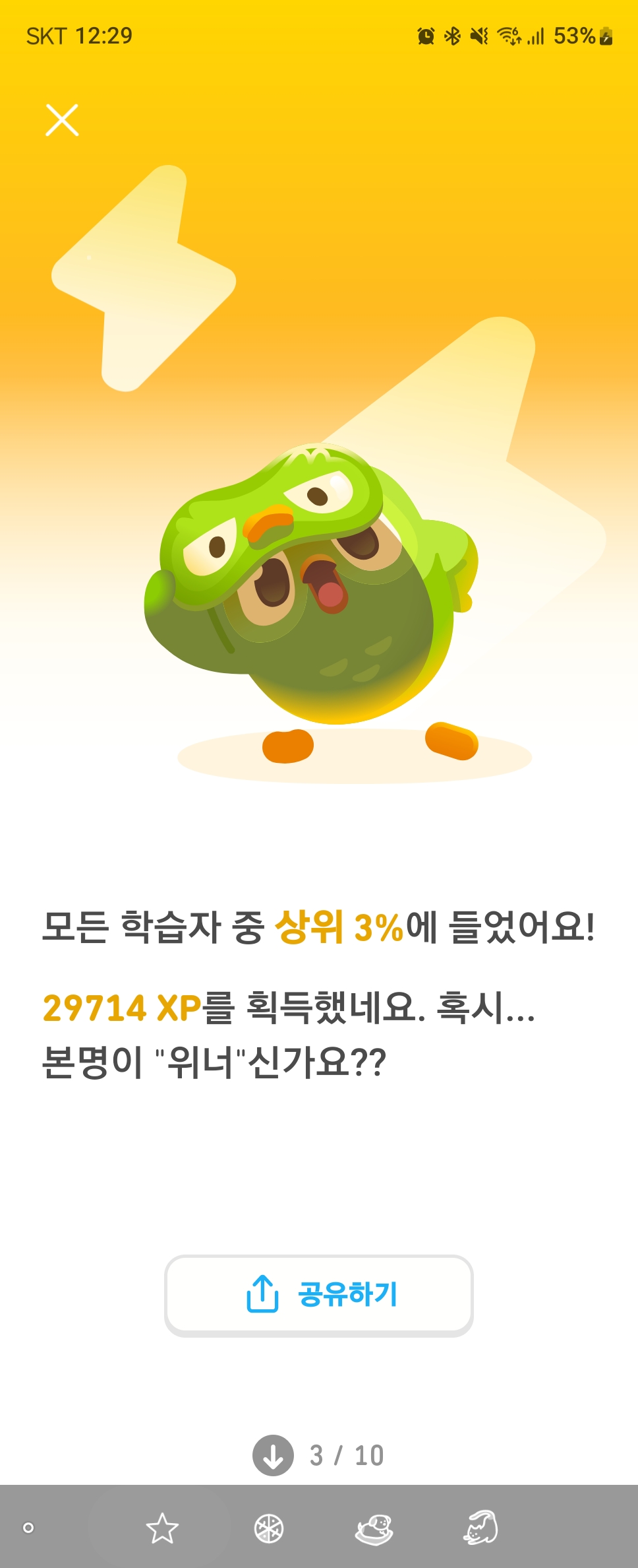 참고로 여담이지만 듀오링고와의 연은 웅진 프로젝트에서 만난 영어교사 출신의 동료분 덕분이였는데 아마 그분은 내가 지금까지 이걸 하고있을거라곤 생각못하실거 같다. 아니 애초에 지나가는 말로 추천해서 내가 할거라고도 못 생각하셨을 것 같다.