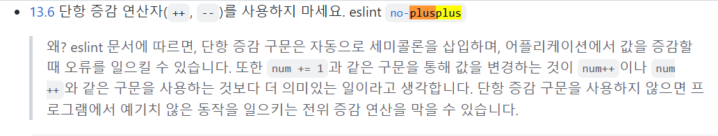 https://github.com/ParkSB/javascript-style-guide#variables--unary-increment-decrement