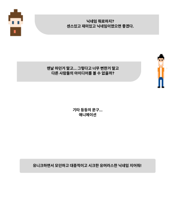 친구에게 닉네임을 선택해달라고 요청 -> 추천 받음